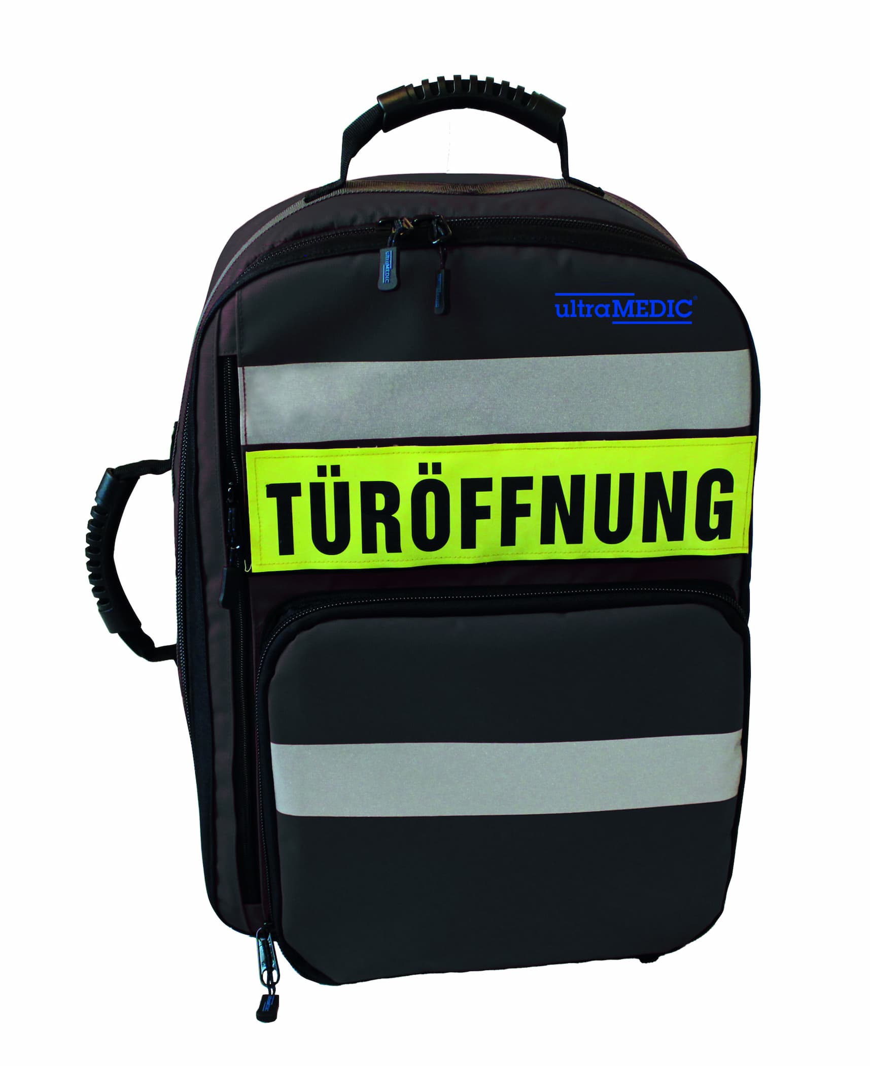 Reflexstreifen machen den RESCUE I gut sichtbar im Einsatz und ein Flauschstreifen auf der Frontseite bietet die Möglichkeit der Kennzeichnung über ein entsprechendes Schild "TÜRÖFFNUNG". Dieses ist im Lieferumfang des Rucksacks nicht enthalten und kann als Zubehör erworben werden.