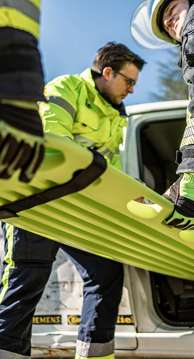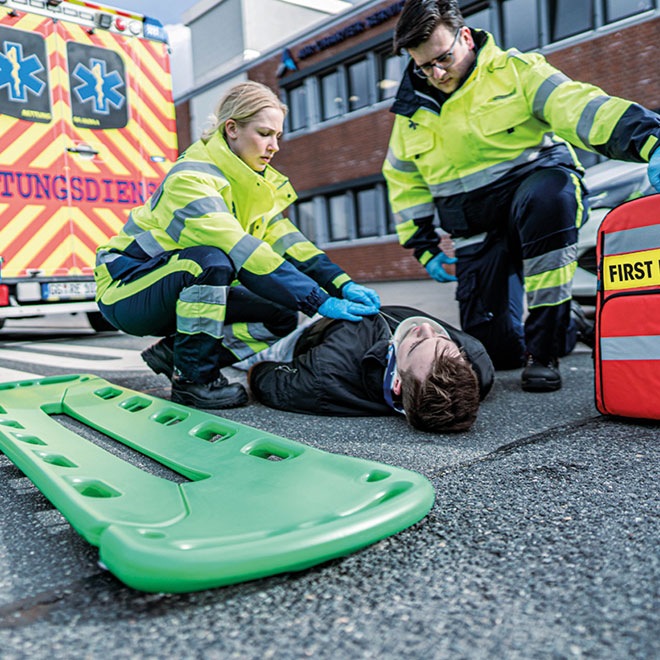 Verkehrsunfälle, Stürze und innere Verletzungen. Rettungsdienste stehen oft vor der Herausforderung, im Notfall Patienten unter schwierigen Umständen aus herausfordernden Lagen zu retten. Um bei einer besseren Patientenbergung zu unterstützen, bieten unsere robusten Rettungstragen die nötige Anpassungsfähigkeit und Sicherheit für den schnellen Transport in Rettungsfahrzeugen bei komplizierten Rettungen aus Verkehrsunfällen oder unwegsamem Gelände.