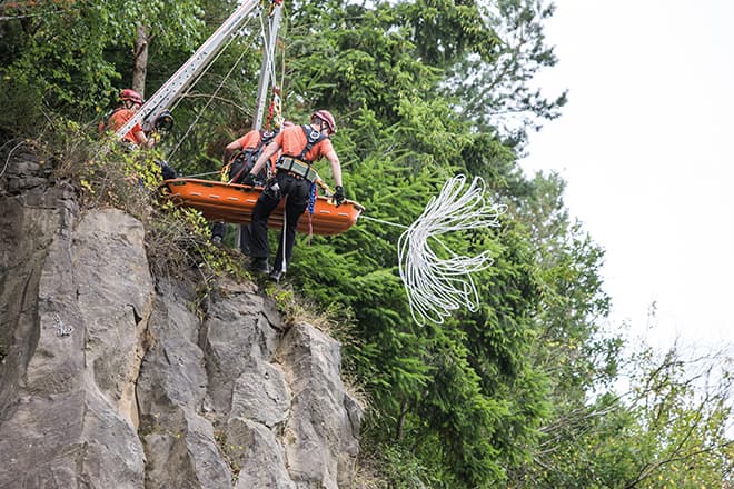 Der "TWIN" ist nicht nur für die horizontale, sondern auch für die vertikale Rettung geeignet und ein zuverlässiges medizinisches Gerät der Klasse I.