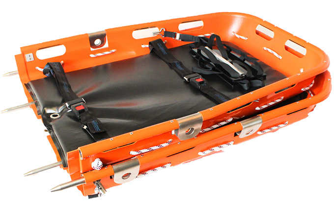 The intended use of the ultraBASKET STRETCHER rescue stretcher series is as a basket stretcher. Use as a basket stretcher, i.e. pulling over the floor, is possible in principle, but is associated with very high wear on the tray floor. We offer four nylon plastic skids as accessories for this purpose. These are factory-fitted and recommended for use as a basket stretcher.